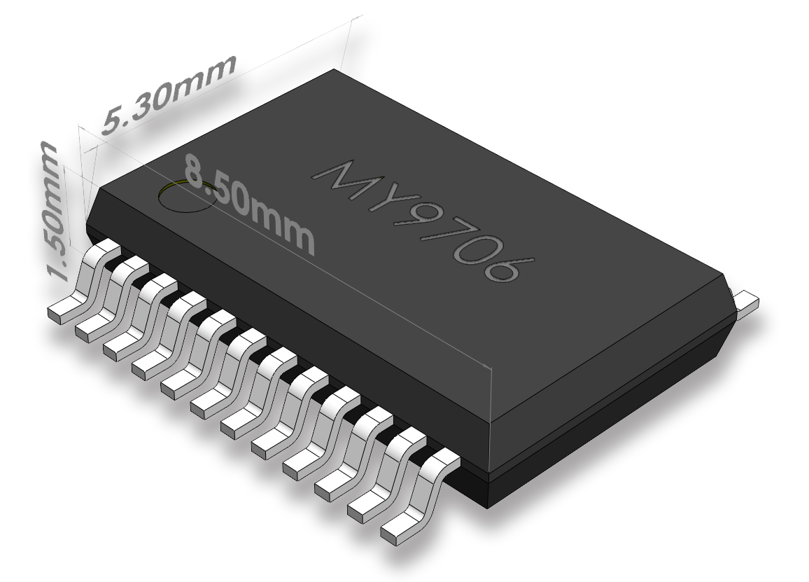 MY9706基于高压CMOS数模混合工艺,内部集成了多路电极驱动、多路信号的采集、放大、模数转换及数字补偿处理等功能, 通过SPI总线与MCU通信,用于各种氮氧化物处理设备和监测传感系统中。